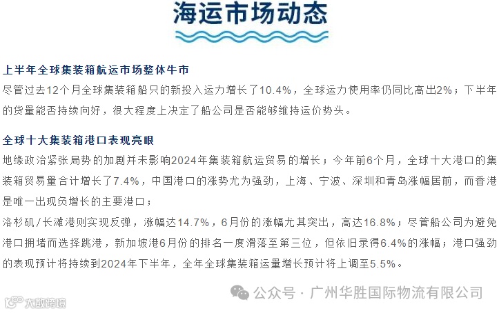 全球海运市场动态(7月下旬至8月上旬)
