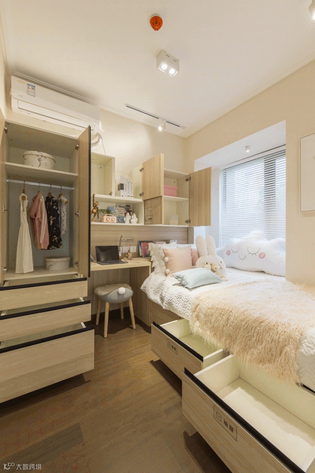 衣柜裤抽部分横排方式设计,收纳空间倍增