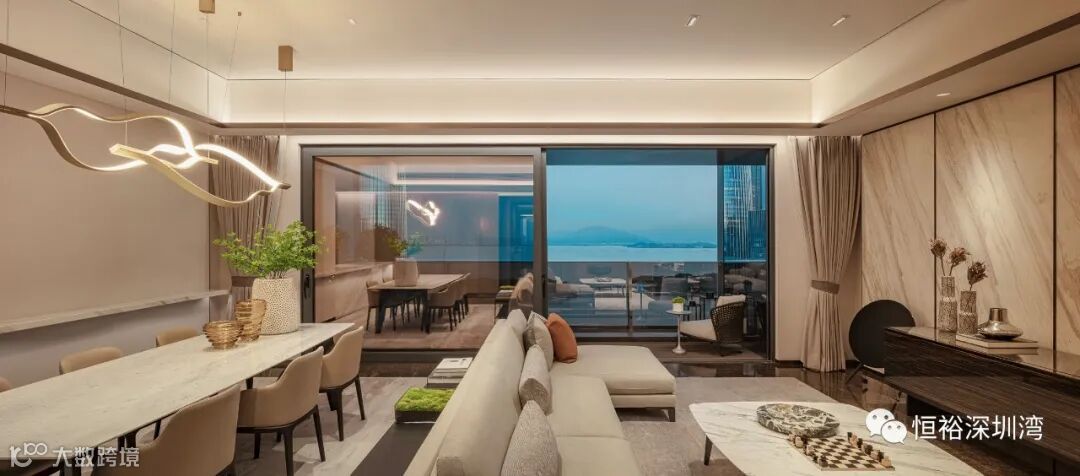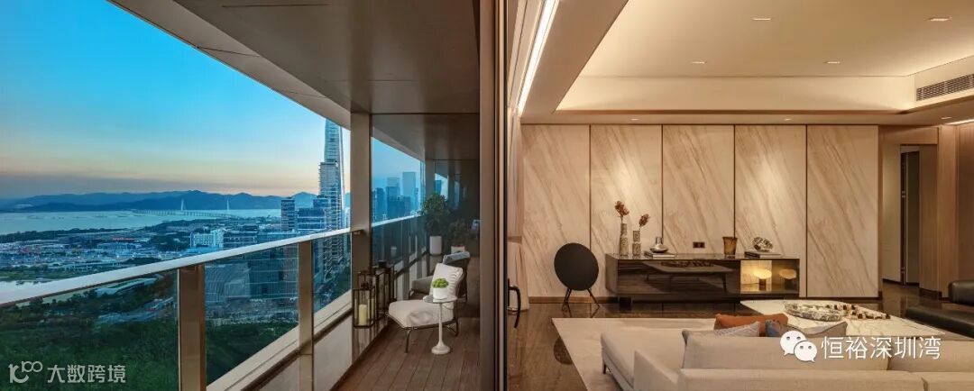世界澎湃处,云端际会中,体验无界大美深圳湾。约120米云端,恒裕深圳湾约340㎡奢阔环幕大平层样板间盛放,演绎顶豪人居全球化视野的湾区时代样板。