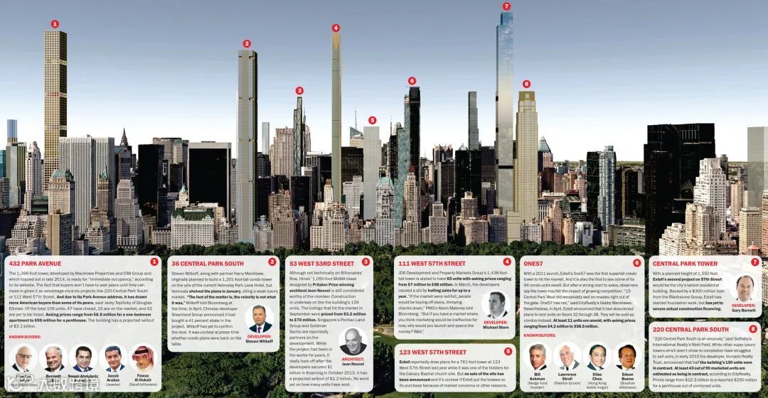 这个中央公园南面的超级豪宅大楼楼群,集结8座摩天大楼,成为纽约财富最集中的顶豪物业地段,更成为世界级的顶豪圈,风头盖过第五大道。