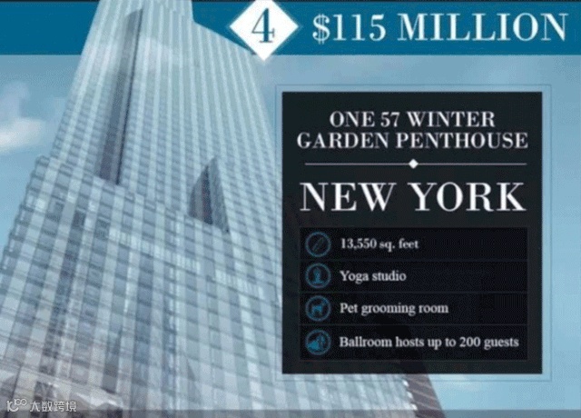 目前全球最高的住宅建筑,其整栋楼的销售将达到40亿美元,是纽约有史以来单盘预计销售金额最高的住宅项目。对冲基金大亨Ken Griffin花2亿3,800万美金购入美国历史上最昂贵的一套顶层公寓。