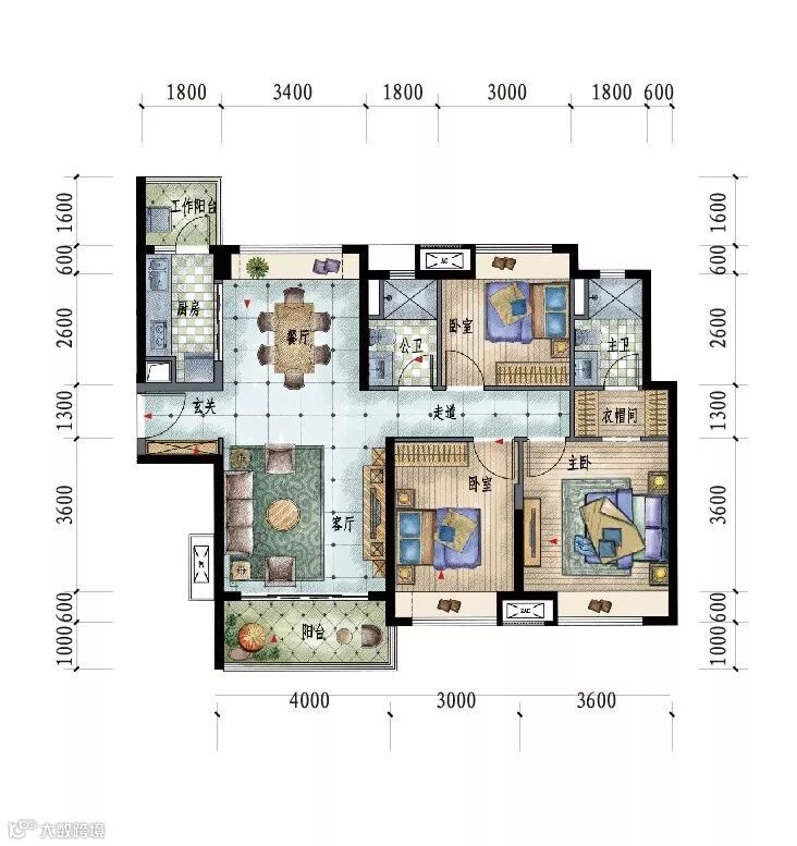 图 | 建面约116㎡三房效果图