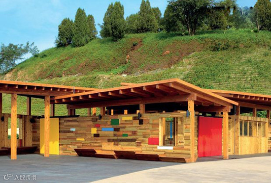 对于可持续的概念,SLOW Architects认为不一定非要采用非常“高级”的技术。从很多传统的建筑中吸取经验,多在设计中采用节省成本也易于维护的被动式策略是更好的选择。同时也要注重细节,比如咖啡厅的部分墙体采用了工地上剩下的一些边角木料拼成的碎拼墙面,既有效利用了材料又生动有趣。SLOW Architects一直与木结构有着不解之缘,在这个过程中被木材的温暖天然质感所深深吸引。2013年,他们正式推出了自己的木家具品牌SLOWood, 希望带给人们更多美好的木质设计灵感。