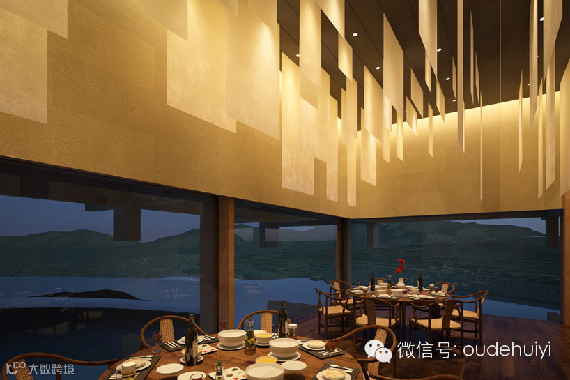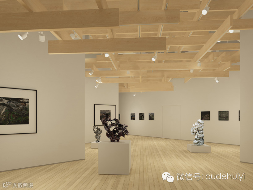 建筑内部有角度的网状廊道也与整栋建筑的形式相呼应,大量的玻璃窗不仅保障了建筑内部有充足的自然光线,还能方便人们看到如诗如画的外景。