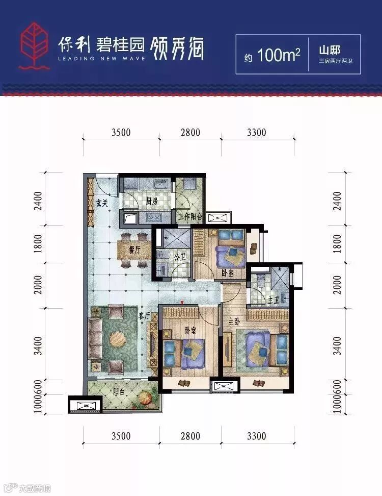 保利碧桂园·领秀海全新蓝湾组团100㎡和116㎡的三房两厅两卫,以超宽格局的生活尺度,科学有序的空间排布,承载着每一位家人对品质生活的追求!