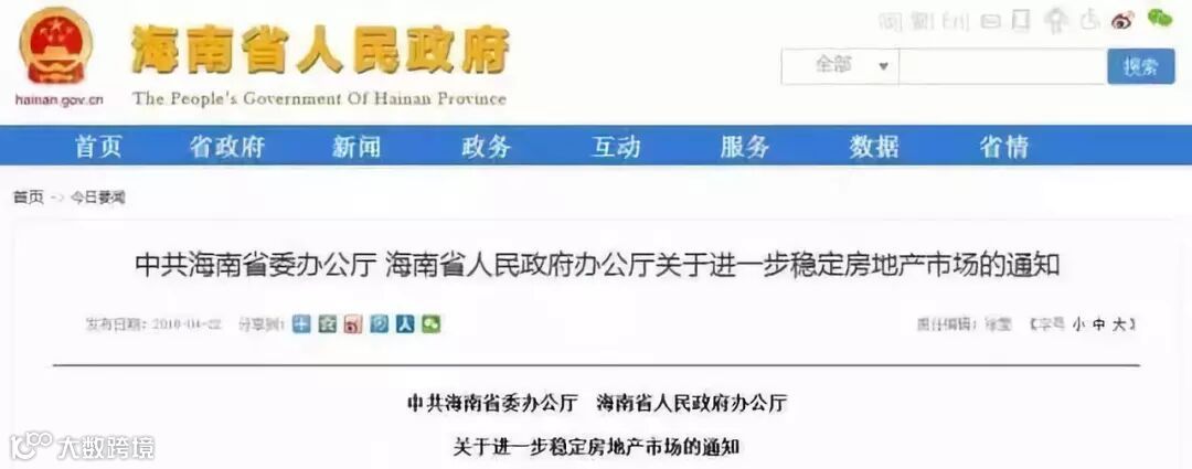 4月22日,中共海南省委办公厅、海南省人民政府办公厅发布《关于进一步稳定房地产市场的通知》。五年社保,首付七成,限售五年,首套住房公积金贷款最低首付款比例升至30%,在已出台限购政策的基础上,商品住宅实施全域限购。