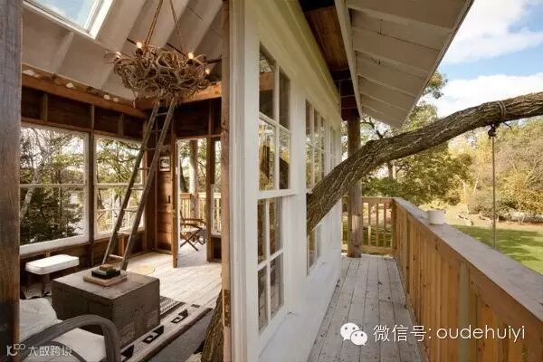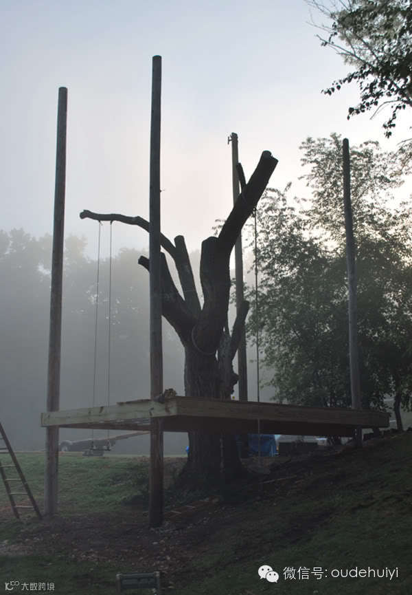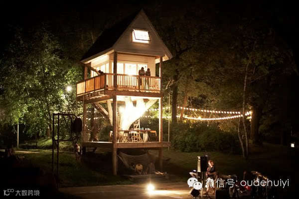每天穿梭在钢筋混凝土的建筑里,带给人更多的是紧张压抑。国外有这么一群年轻人,他们把房子建造在一个度假露营地中心巨大的老榆树上 ,经过讨论,朋友们决定将小木屋设在树冠上,在接近地面处设计一个户外露台,房间的地板需要打开三个洞以便让树干穿过。