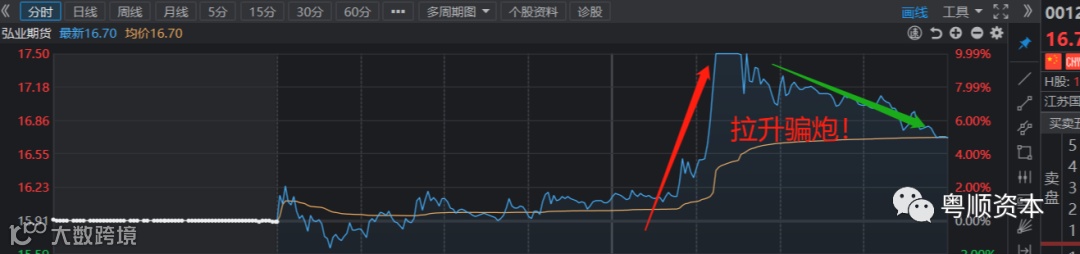 但我们可以看到大金融人气龙弘业期货,在拉升触板后炸板回落