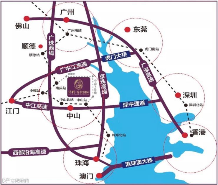 中山,粤港澳大湾区中唯一一个同时连接佛山、广州、深圳、珠海的城市,作为湾区的交通辐射中心,拥有五横四纵高速路网,90公里半径内,坐拥湾区5大机场和4大深水港。