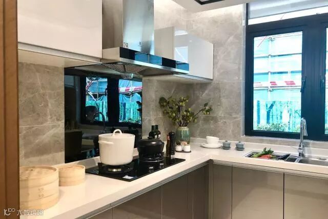♦L型厨房设计,搭配开放吧台,科学备餐动线。