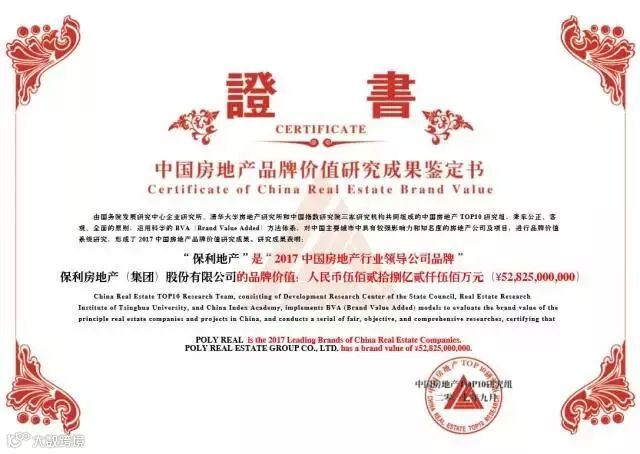 保利地产凭借精致产品及高速的发展,目前已布局国内珠三角、长三角、环渤海、中部、西南主要经济圈的99个城市,品牌价值达528.3亿元,同比增长18.57%,荣获“2017中国房地产行业领导公司品牌”。