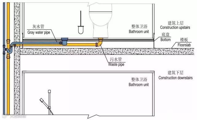 传统卫浴空间的噪音来源于上层住户和自家的水流声。