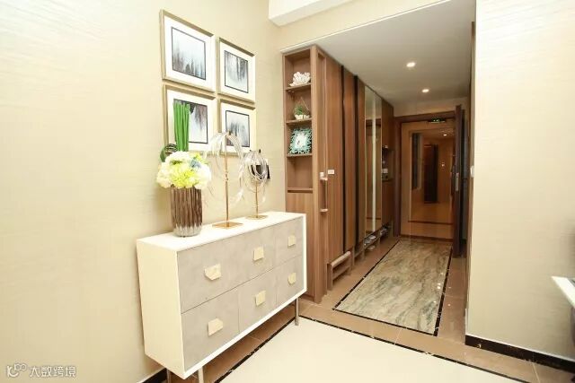 ▼入户玄关柜,融合储物柜、鞋柜和雨伞柜多重功能,并设置钥匙小挂钩、一键断电开关,USB接口插座,给归家的主人最细心的呵护。