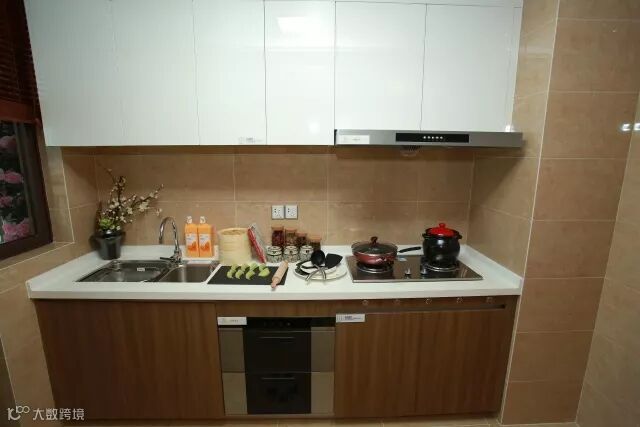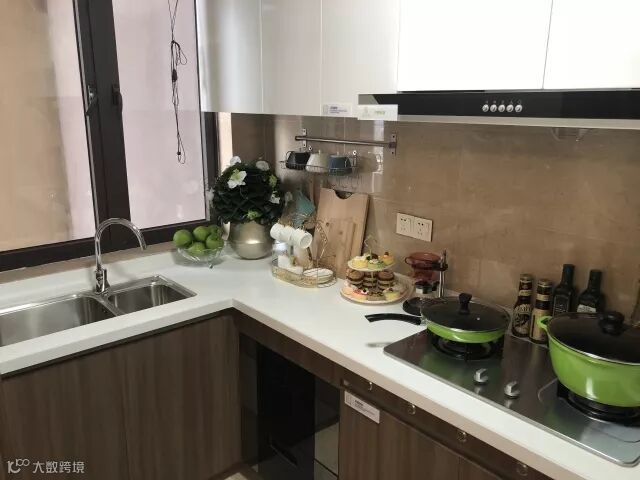 ▼L型厨房,洗、炒、切一气呵成,不常用的锅碗瓢盆可统统收进厨房收纳柜,给更多空间让您尽情“大展厨艺”。