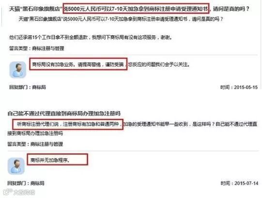 国家工商总局商标局已经明确地答复了“没有商标注册加急这回事”,没有加急!没有加急!!没有加急!!!重要的事情说三遍!