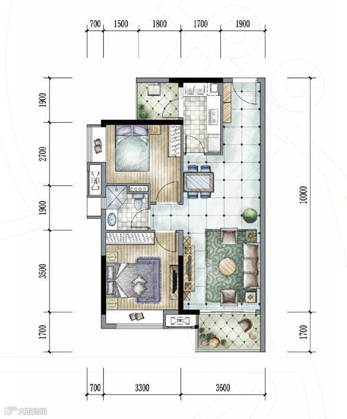 1、舒适两房布局,方正实用,二人世界里悦享香槟好时光。