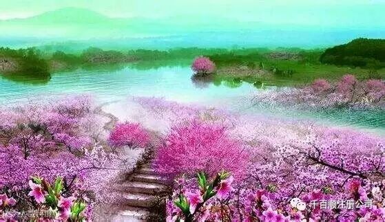 忽逢桃花林, 夹岸数百步, 中无杂树, 芳草鲜美, 落英缤纷, 渔人甚异之。--摘自陶渊明的《桃花源记》