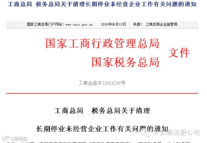 工商总局、税务总局5月27日联合发出《关于清理长期停业未经营企业工作有关问题的通知》,决定在全国范围内清理长期停业未经营企业,通过清理工作,唤醒一批,规范一批,吊销一批,引导企业守法诚信经营,净化市场环境。