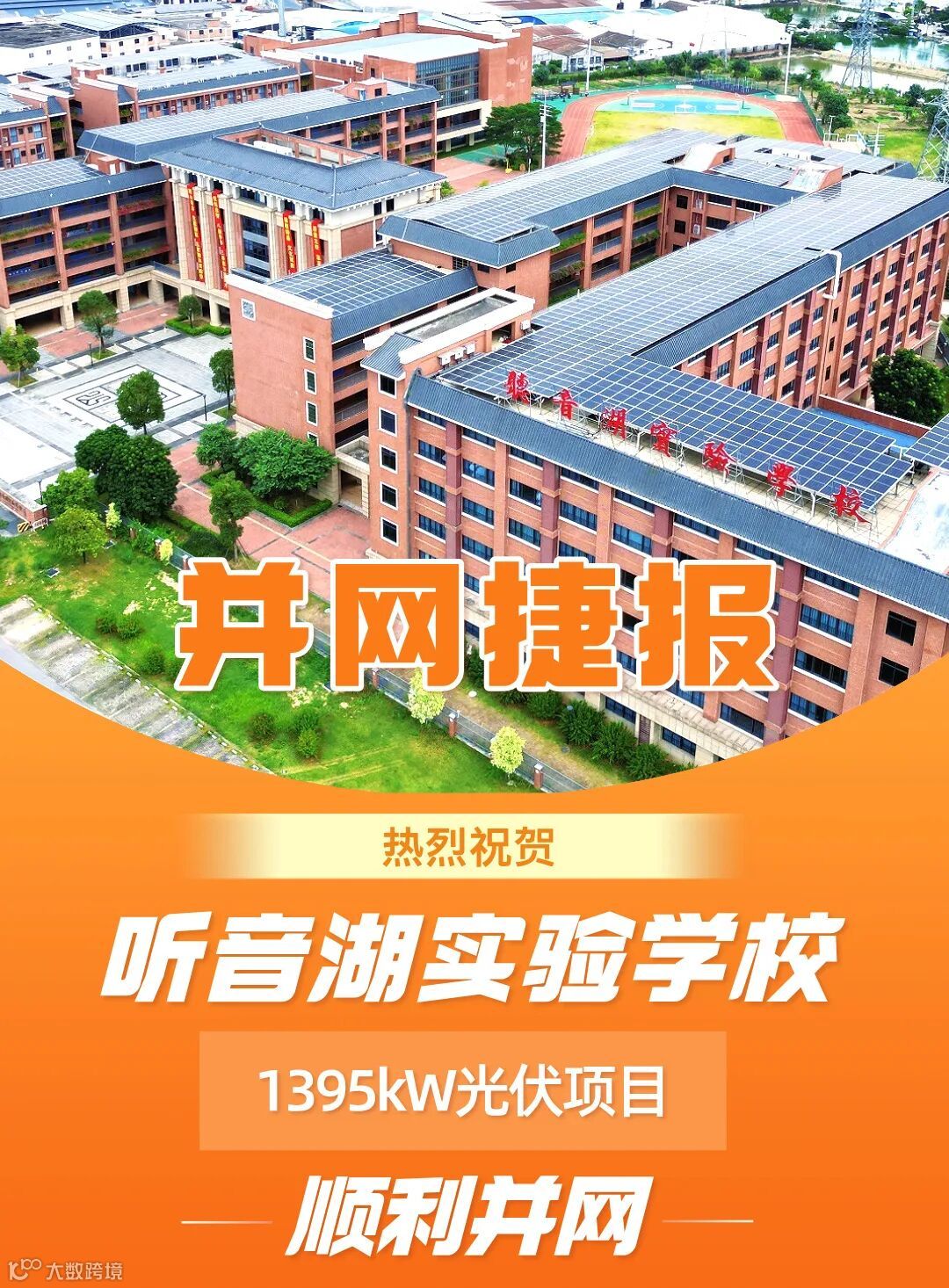 2025年11月18日,听音湖实验学校光伏项目顺利并网发电。该项目使用合同能源管理(EMC)合作模式,通过棚架式安装形式,在学校屋顶安装了2163块晶澳双面光伏组件,装机容量1395kW。