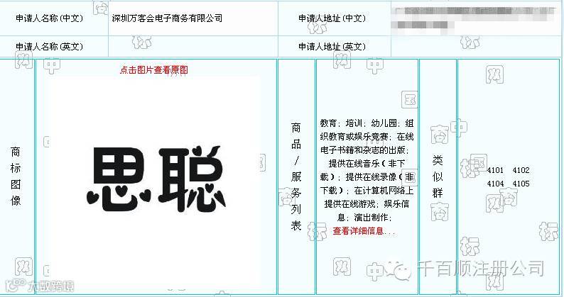,在思聪兄红霸网络头条时刻,竟没把自己“保护”起来。被一家名为“深圳万客会电子商务有限公司”捷足先登,把"思聪"两字在第41类在线游戏·组织教育或娱乐竞赛·娱乐信息等商品或服务上注册为商标啦。