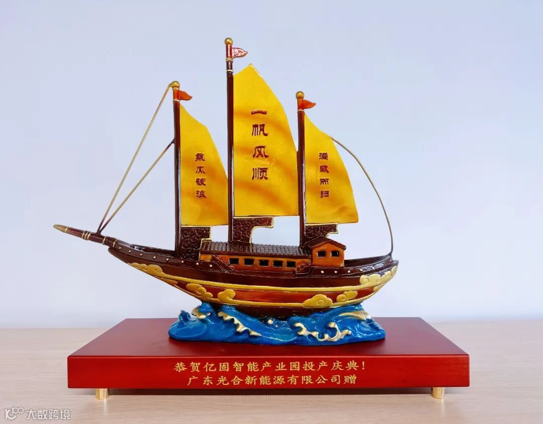 光合能源总经理郑总受邀参加本次盛典,共同见证亿固集团的高光时刻,并以「一帆风顺」帆船摆件为贺礼,代表