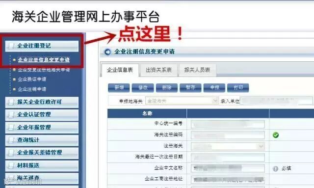 企业中文名称、工商注册地址、行政区划代码、经济区划代码;法定代表人(负责人)及其身份证件类型、身份证件号码;报关企业分支机构上级单位信息(组织机构代码、单位名称)
