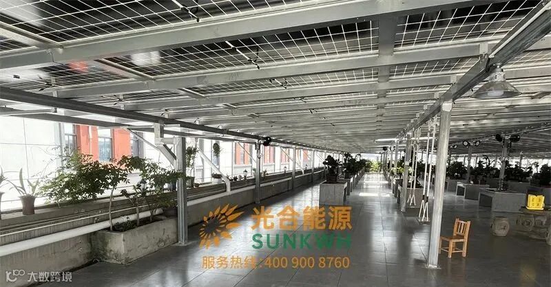 本项目采用棚架式的支架安装方式,隔热效果更好,装机容量更大、发电量更多。拥有屋顶的使用空间,并且有利于保护屋面。