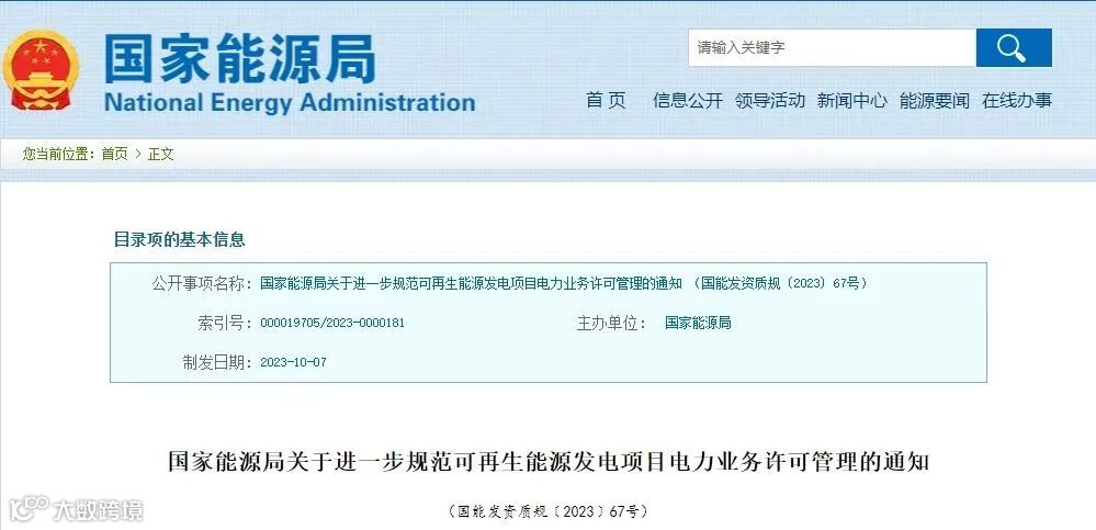为进一步规范可再生能源发电项目电力业务许可管理,助力推动能源绿色低碳高质量发展;10月24日,国家能源局发布关于进一步规范可再生能源发电项目电力业务许可管理的通知。
