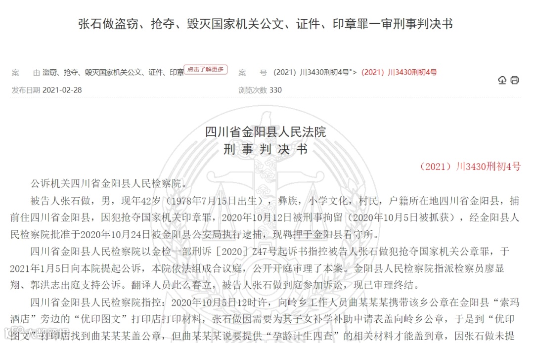 根据(2021)川3430刑初4号的判决书显示:
