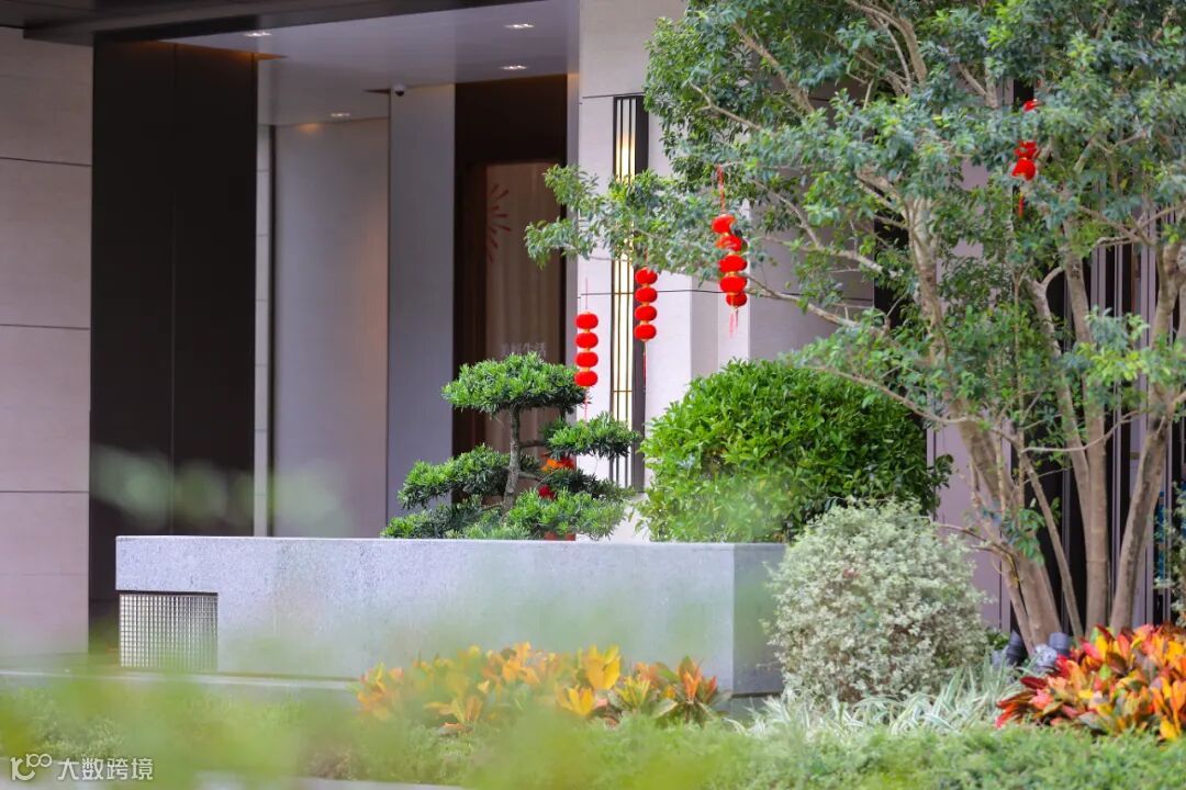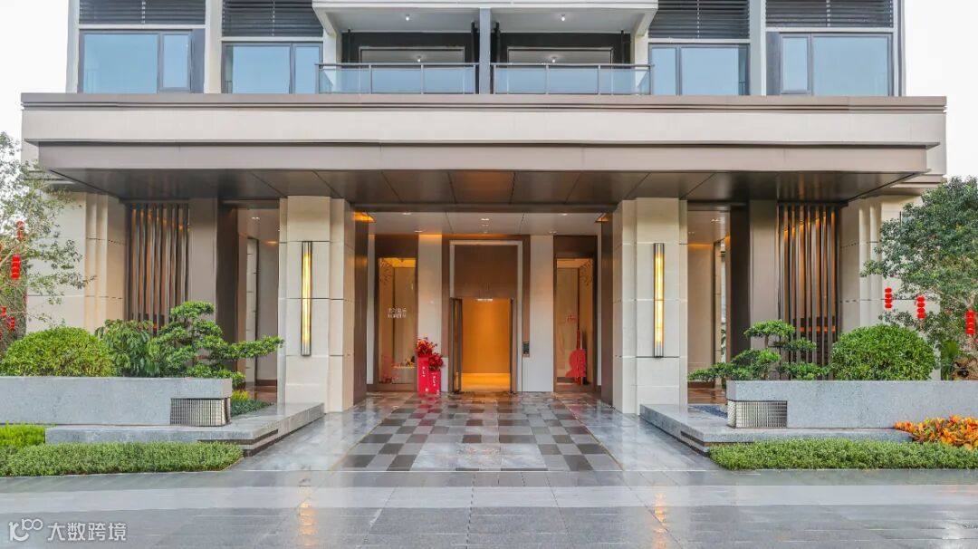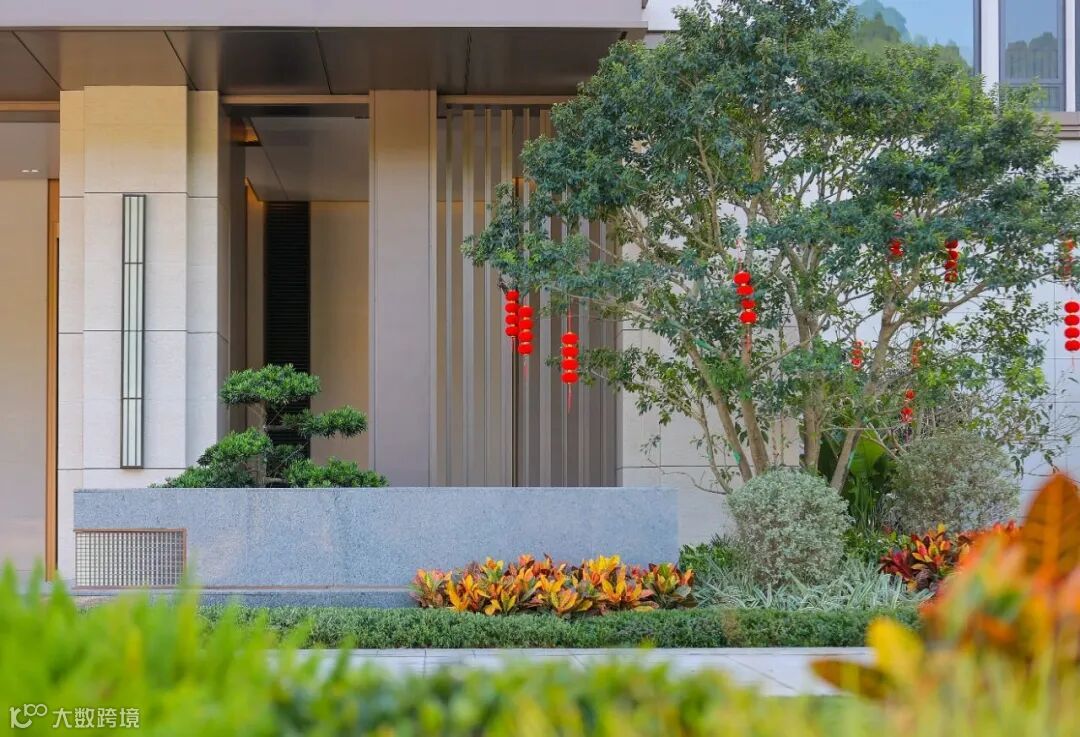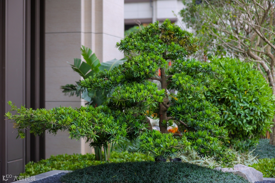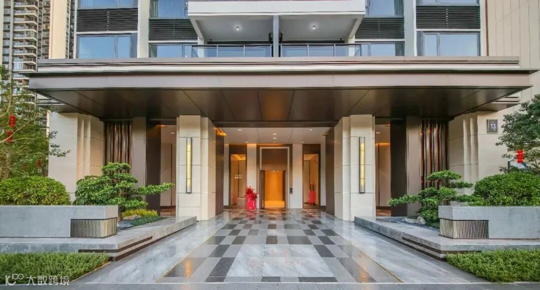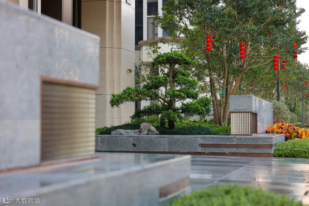 入户大堂门前更是斥巨资栽植两棵日本进口罗汉松,在定制格栅灯具与拼花地砖的衬托下,入户大堂给人以恢弘大气的视觉冲击,不动声色间彰显业主尊贵身份。