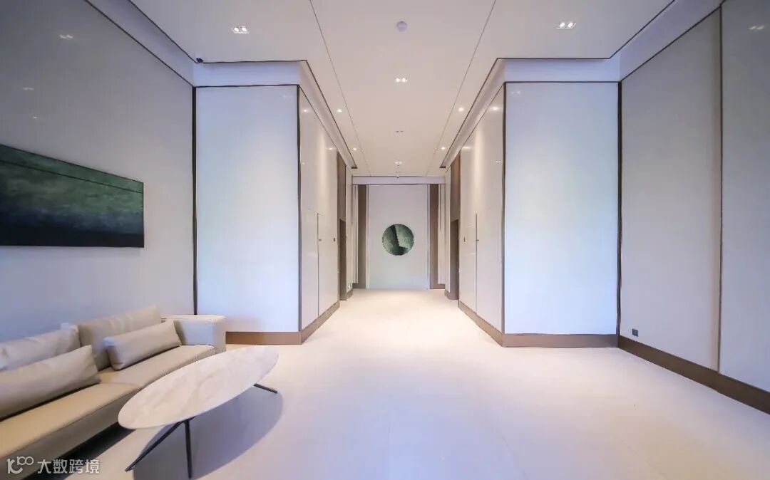 入户大堂均衡考虑建筑的整体性,延续现代典雅的设计风格,通过线与面的结合,化繁为简,呈现出当代建筑美学的时代焕新。