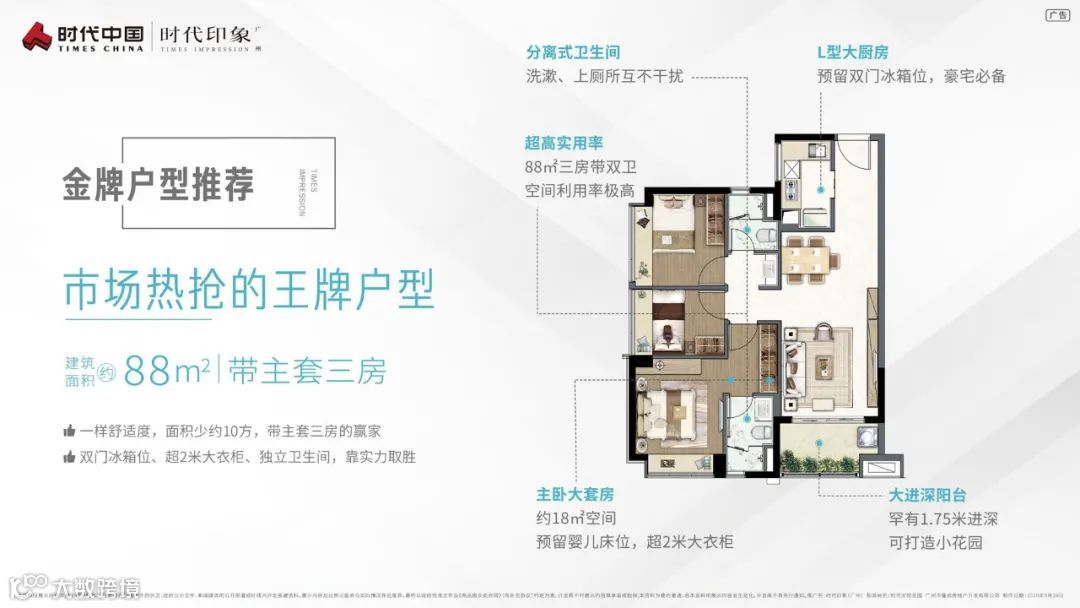 【户型】:建面约88-99㎡三房,88㎡(带主套三房)、98㎡(全南向三房)、99㎡(板式通透三房)