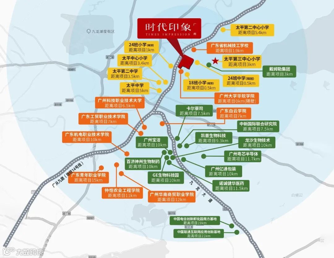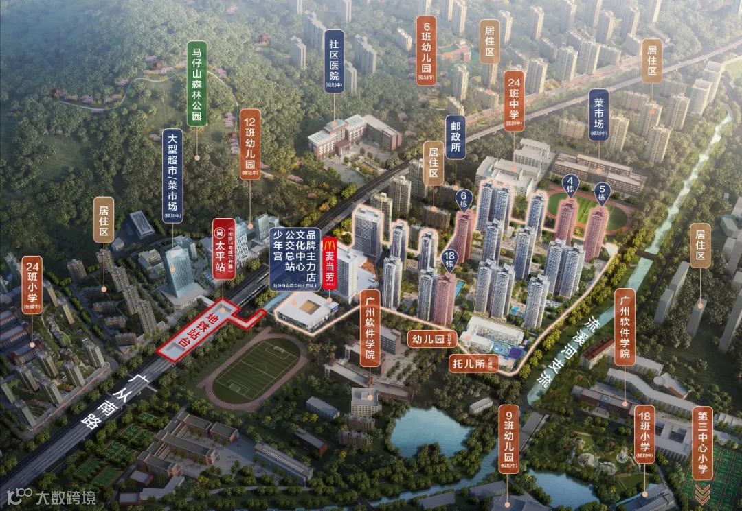 围绕太平地铁站口新增规划了1所24班小学和1所18班小学、以及1所24班中学、2个商业中心(时代印象汇+项目正对面规划新增商业中心)。(注1)