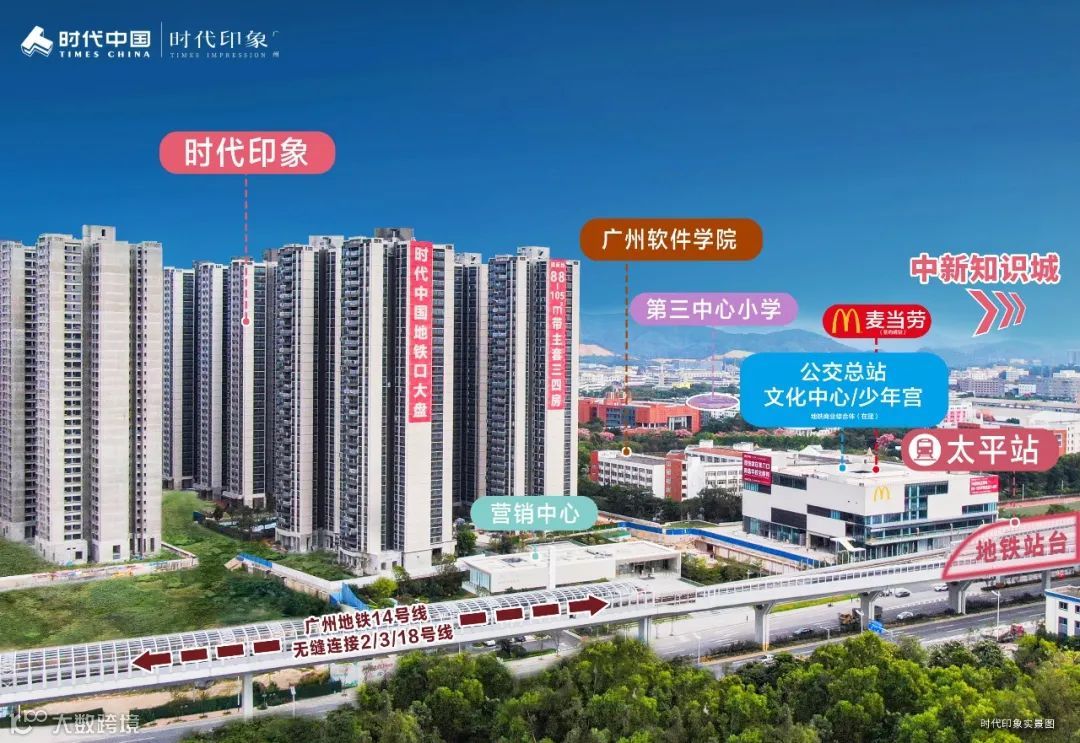 时代印象,2站到知识城,享知识城利好,周边更有三大千亿级产业围绕,黄金中心位腾飞在即,未来可期!
