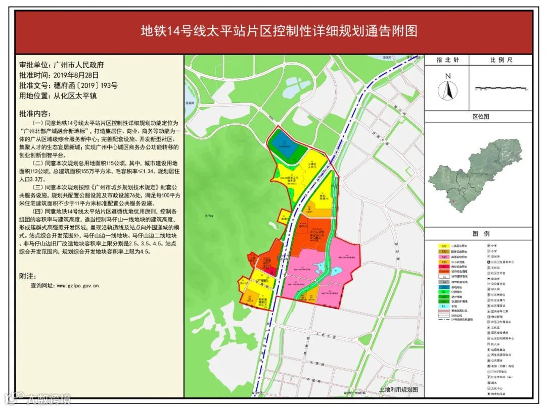 2019年8月广州市通过地铁14号线太平站片区控制性详细规划建设山水交融的155万㎡太平宜居新城。