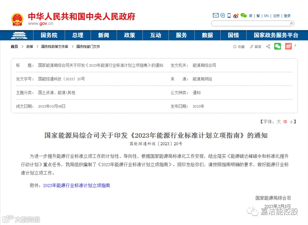 3月16日,国家能源局综合司发布关于印发《2023年能源行业标准计划立项指南》(以下简称立项指南)的通知。