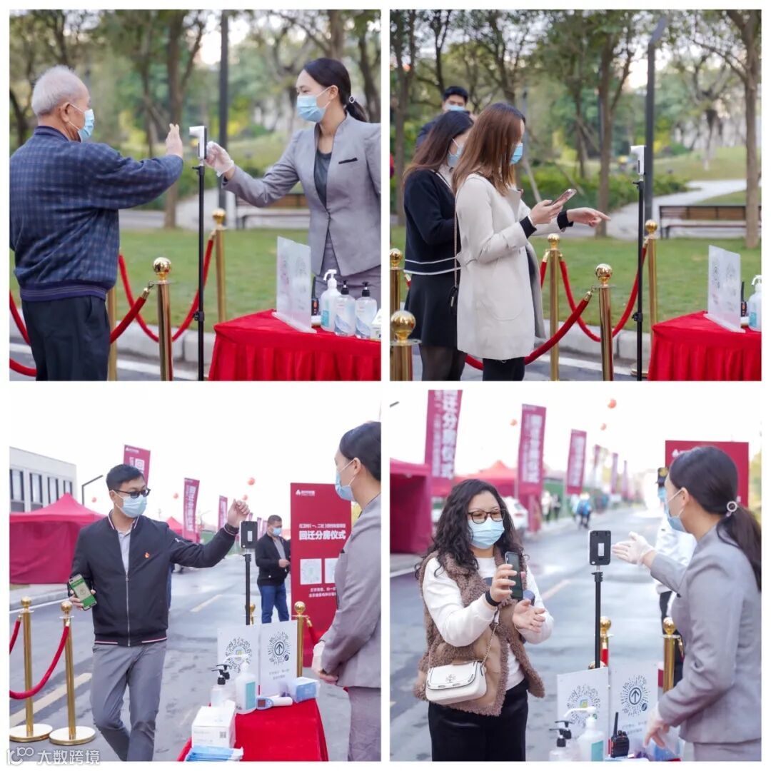 上午9:30,嘉宾们按照现场防疫要求戴好口罩有序排队,依次出示穗康码测温入场,等待分房仪式的开始。