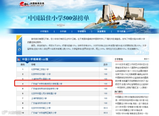 2017年盖德排行榜:广州显佳公办小第一名(力压东风东路小学和小北路小学)