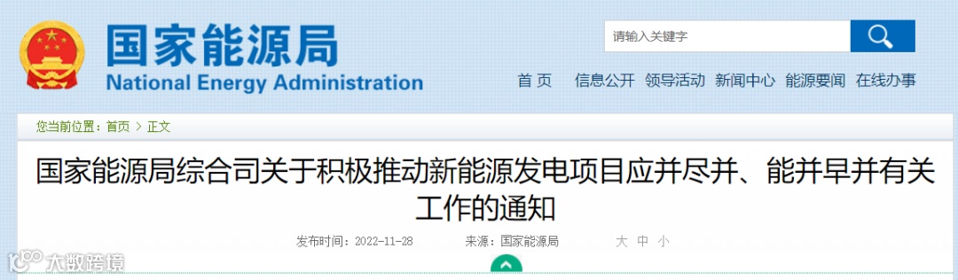 今年以来,我国新能源发电持续快速增长并保持较高利用水平,第四季度新能源投产并网较为集中。保证新能源发电项目及时并网,既有利于增加清洁电力供应,发挥新能源在“迎峰度冬”期间的保供作用,也有利于促进能源清洁低碳转型,助力实现碳达峰碳中和目标。为进一步做好2022年底前新能源发电项目并网接入工作,现就有关事项通知如下。