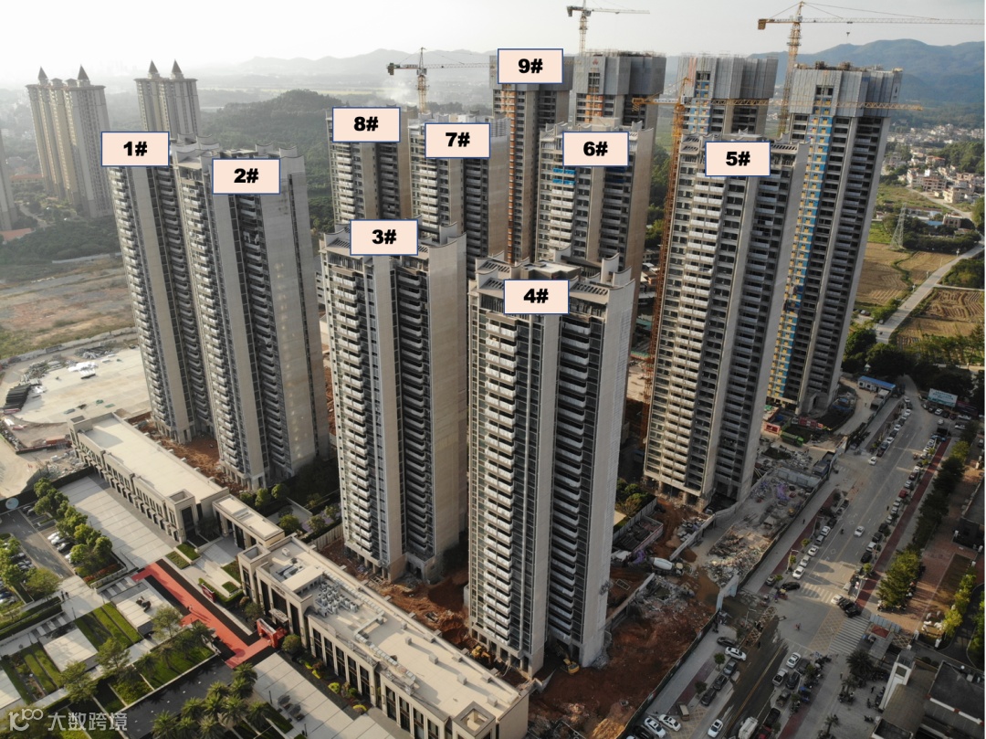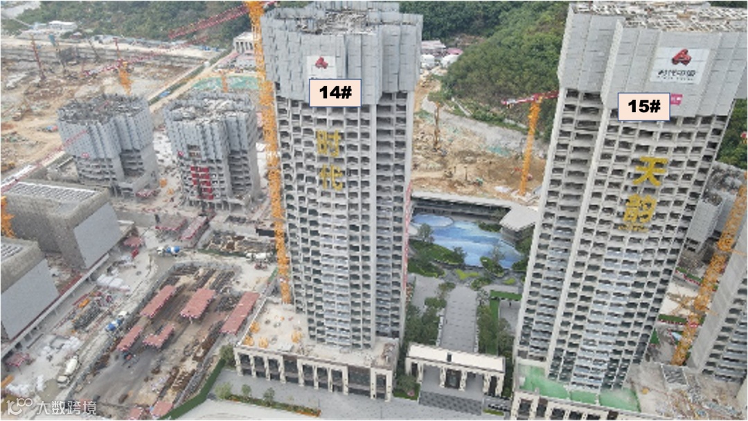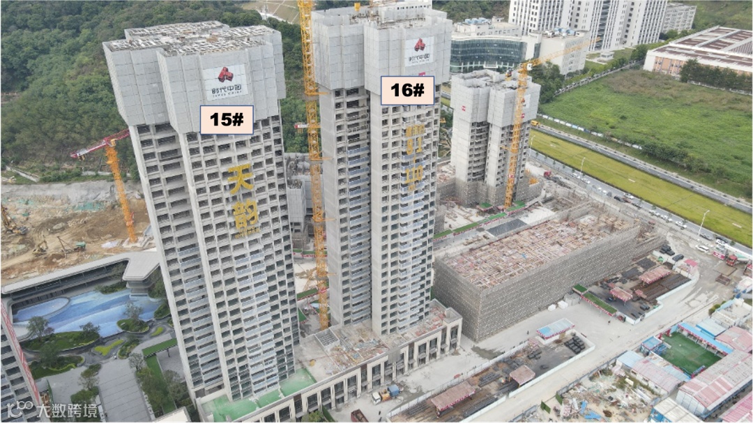 15#主体结构完成至32层;外立面幕墙完成17层铝窗栏杆安装,铝合金门窗完成至20层;水电预埋至32层;竖向风管完成至27层;消防立管安装至27层