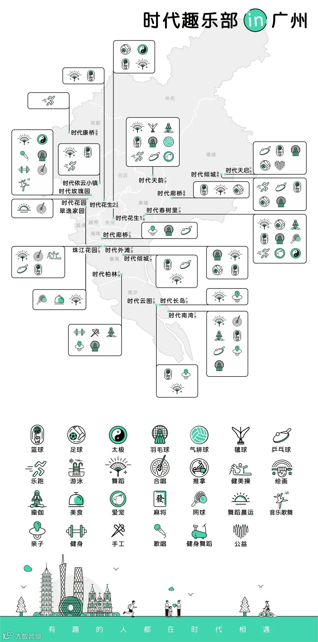 目前,时代中国广州公司在时代春树里(广州)、时代南湾(广州)、时代玫瑰园(广州)等20个已交付社区成立了89个趣乐部。