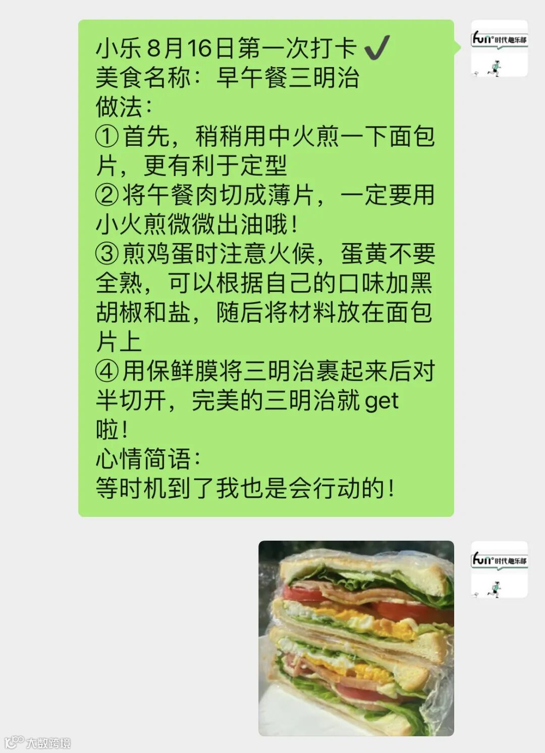 分享打卡标准:分享【姓名+打卡时间+第几次打卡+食谱/做法+心情简语+自制食物分享图】至时代倾城(中新)趣恰饭趣乐部微信群,即为完成一次打卡;