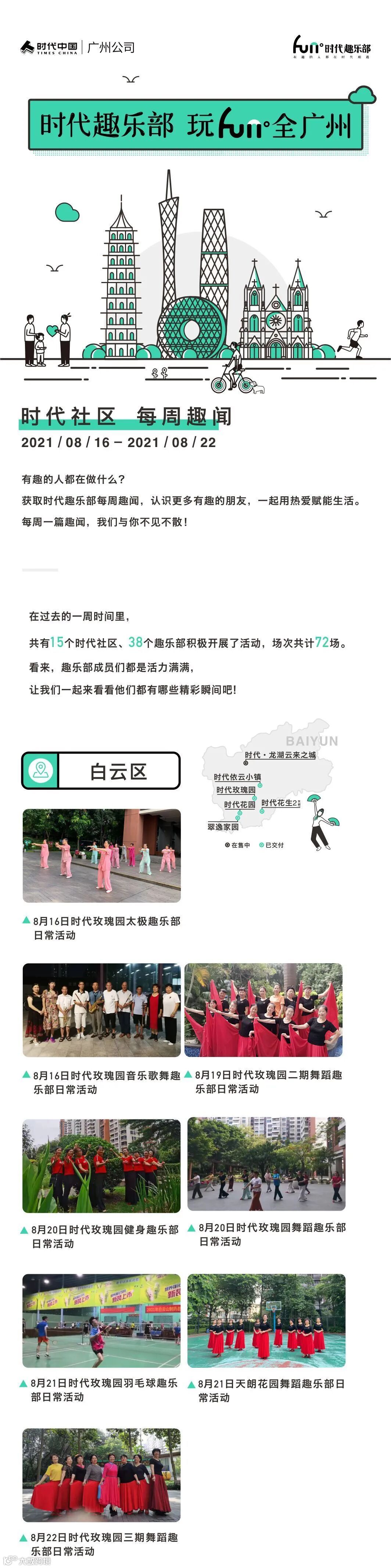 目前,广州时代趣乐部已经覆盖天河、海珠、白云、番禺、黄埔等区域共21个社区,建立了93个趣乐部,共有6926名志同道合的时代业主加入了趣乐部的大家庭。