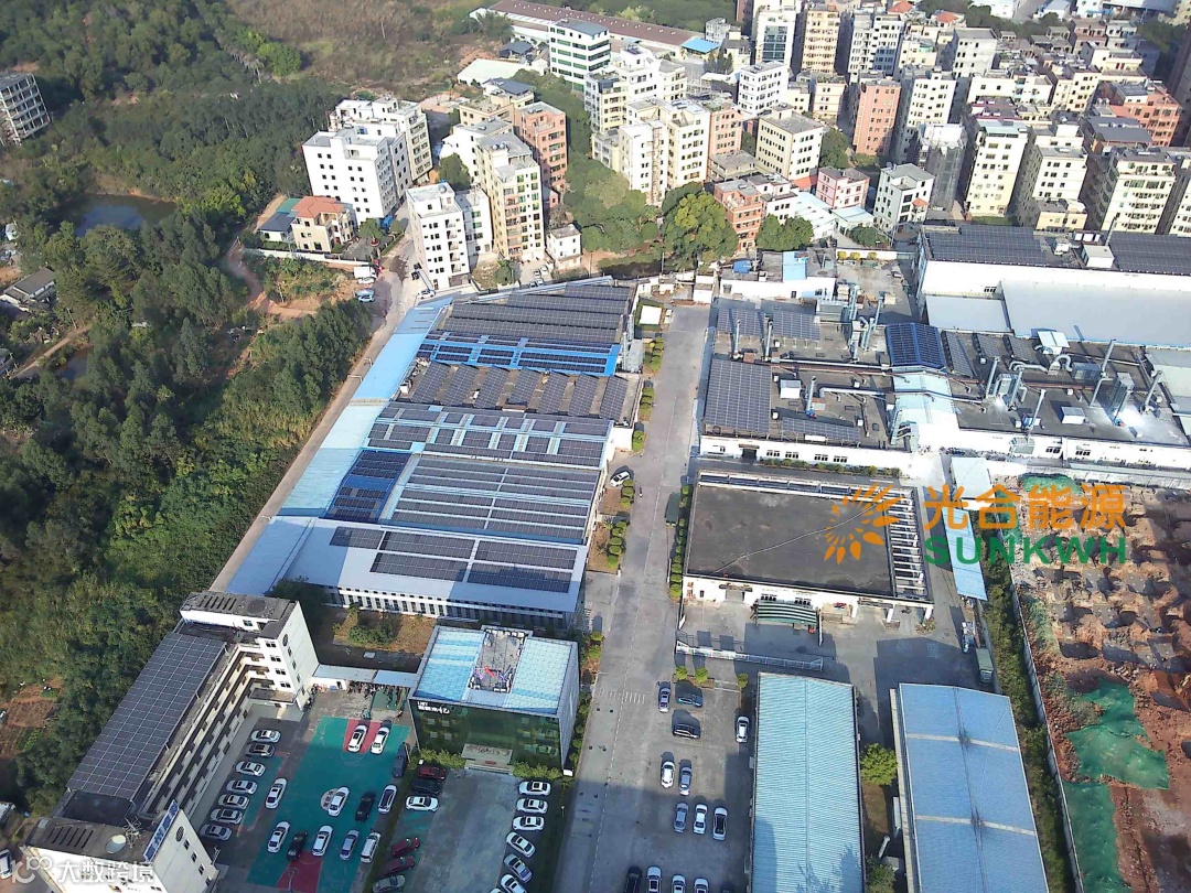 惠州市摩彩装饰材料有限公司1MW工商业屋顶光伏电站航拍图