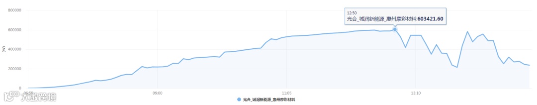 (表2 1月06日发电量数据,中午12:50为最高发电量,发电功率达到603421.6W)