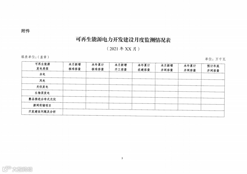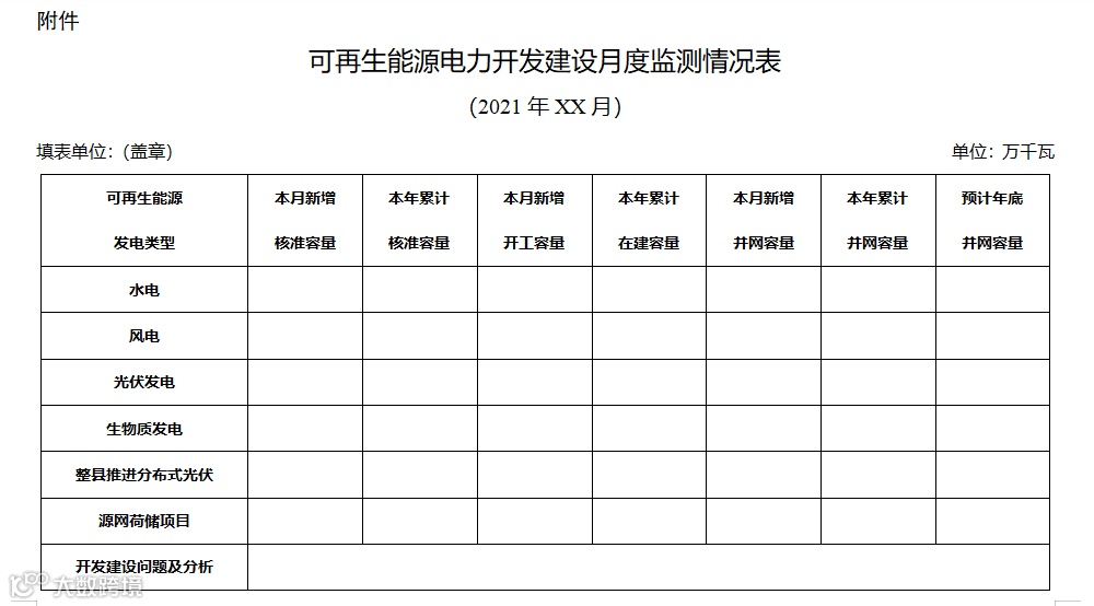 附件:可再生能源电力开发建设月度监测情况表