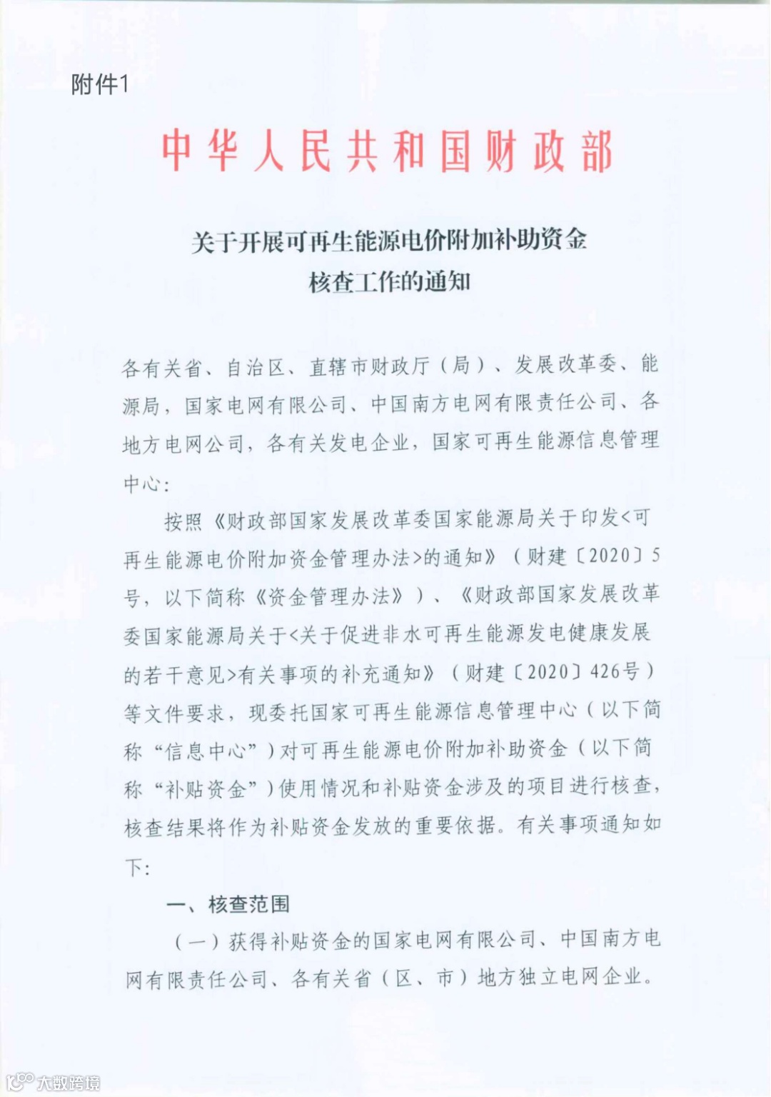 近日,财政部经济建设司、国家发展改革委价格司、国家能源局新能源司联合印发《关于开展可再生能源电价附加补助资金核查工作的通知》,要求国家可再生能源信息中心对享受国家可再生能源电价附加补助资金的风电、光伏发电、生物质发电项目以及公共独立系统项目进行核查。