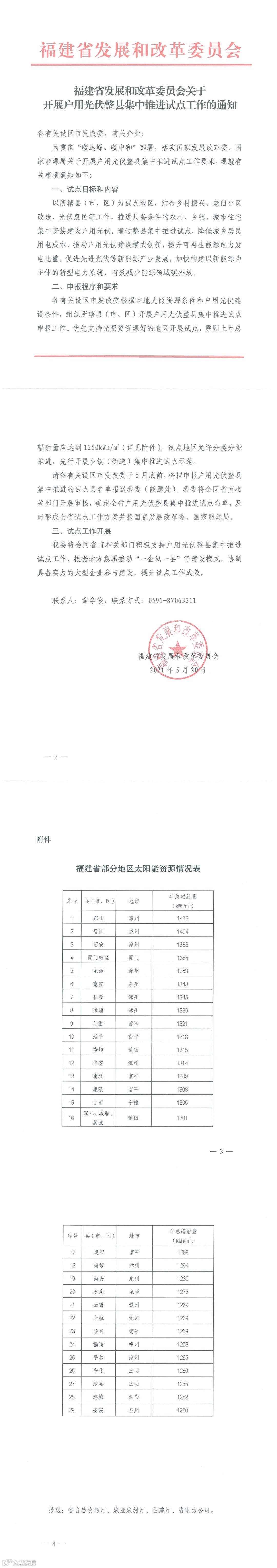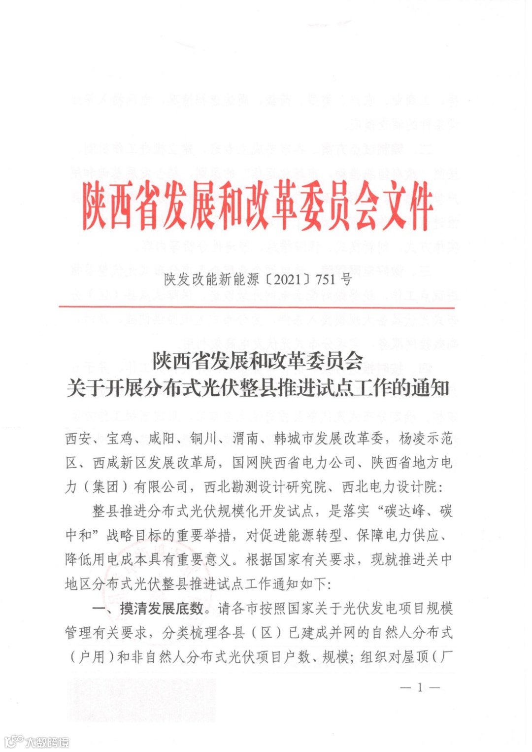 在此之前,广东、福建、江西、山东和陕西相继要求整县(市)推进户用和屋顶分布式光伏开发试点工作。
