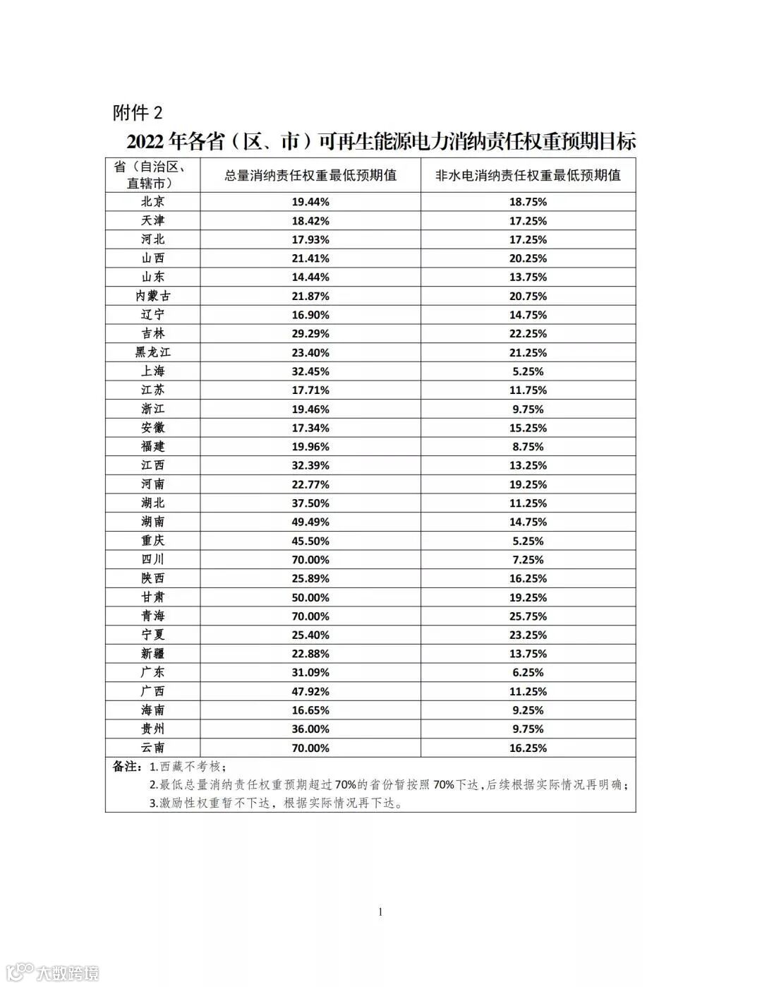 2.2022年各省(区、市)可再生能源电力消纳责任权重预期目标
