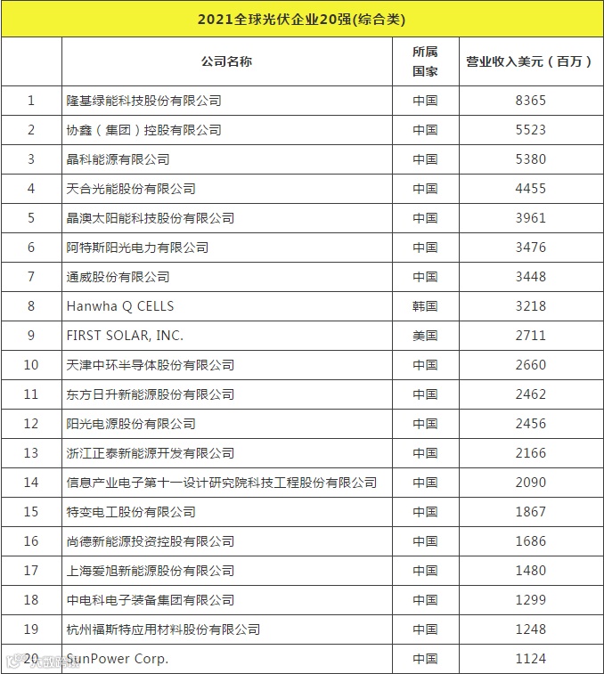 “2021全球光伏20强排行榜”由“2021全球光伏企业20强(综合类) ”、“2021中国光伏企业20强(综合类)”、“2021中国光伏电站投资企业20强”、“2021中国光伏电站EPC总包企业20强”、“2021中国光伏组件企业20强”、“2021中国光伏逆变器企业20强”、“2021中国光伏支架企业20强”七大榜单组成。